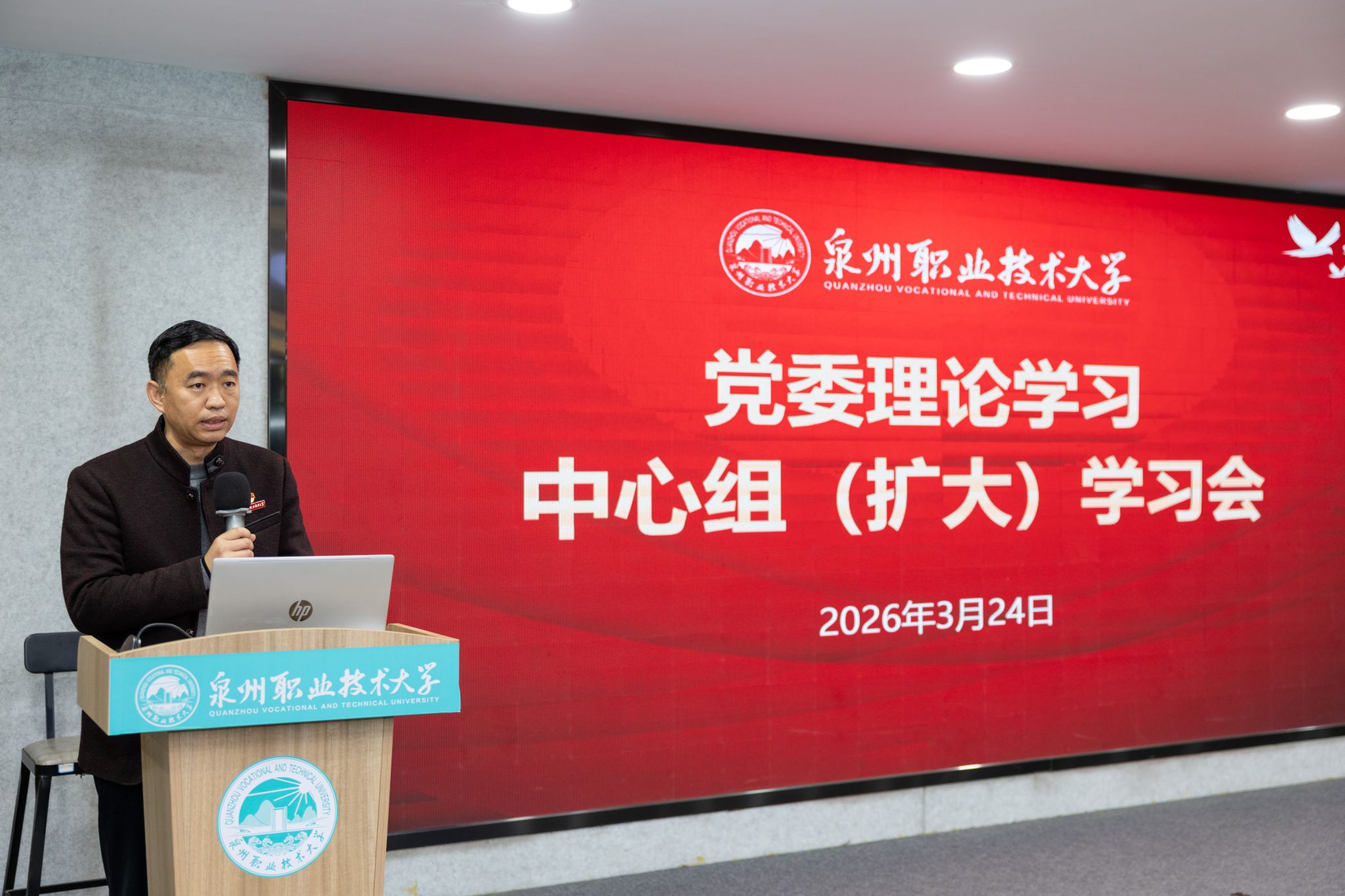 3月24日上午,泉州职业技术大学在A301会议室举行党委理论学习中心组(扩大)学习会,专题学习贯彻全国两会精神,深刻把握“十五五”开局之年的战略部署与使命担当。学校党委书记傅志雄主持会议。会议邀请到福州大学马克思主义学院院长詹志华教授作专题辅导报告。泉州市高教发展中心主任黄永东,以及高教中心党员同志,晋江市“3+4”中本思政课联盟校代表等党员同志,学校在家领导、党委各部门负责人、各基层党组织书记、马克思...