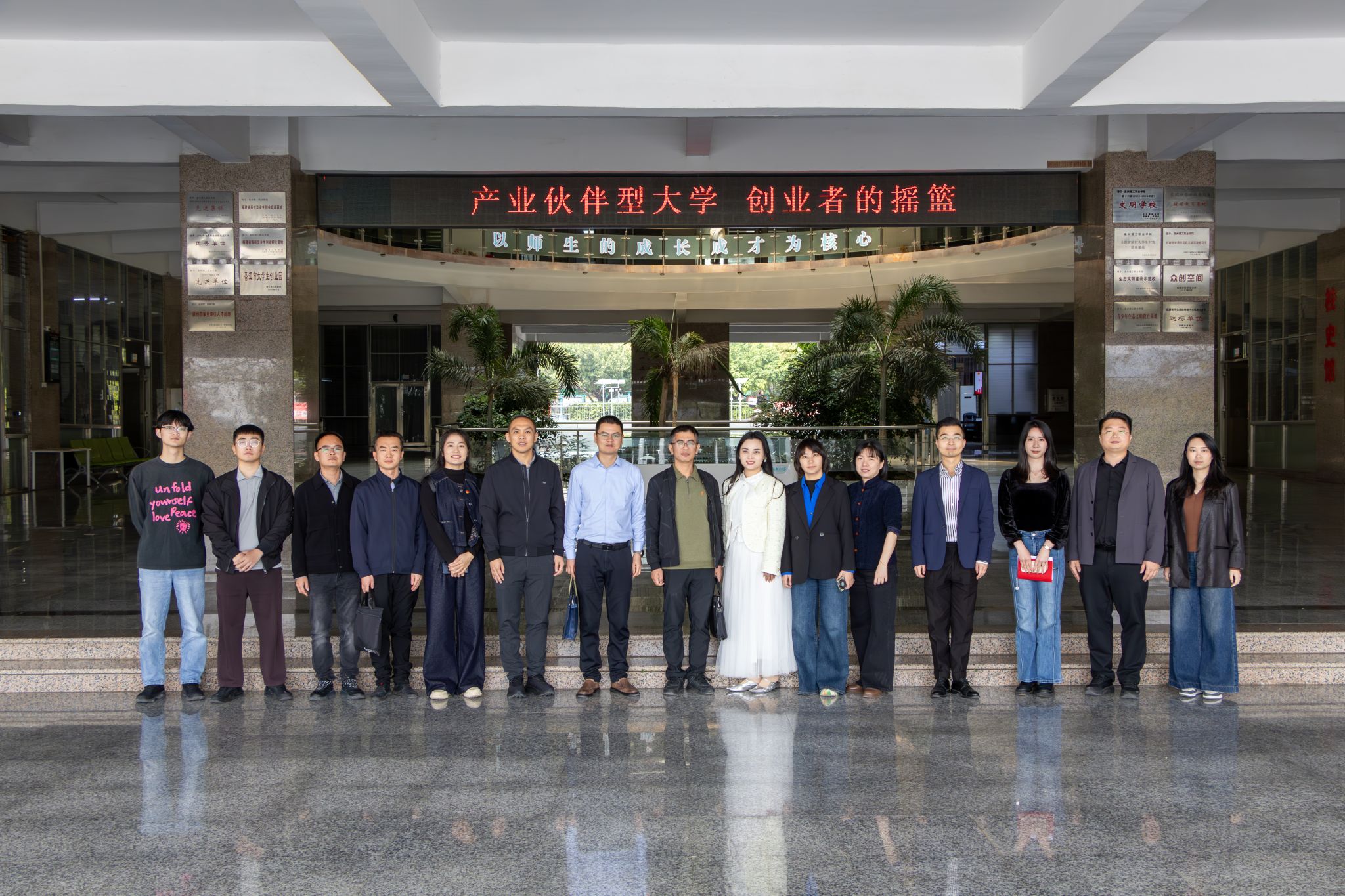 3月28日,泉州市企业经营管理协会执行会长杨树青带领协会企业家代表团莅校交流访问。我校党委副书记、副校长蔡金佩,招生办公室、联合创新产业学院、艺术传媒学院负责人陪同参观并参加座谈会。杨树青一行先后参观我校生态校园沙盘、校史馆、艺术设计展厅、电商直播基地、数智产教融合展厅及行云新能源产业学院等教学科研场所。校领导围绕学校发展历程、校企合作模式、专业群建设成效及数智化人才培养路径等方面作系统介绍。座谈...