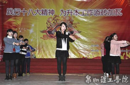为深入践行十八大精神,为学校升本工作添砖加瓦,12月28日建筑系在思恩楼大礼堂举办“践行十八大精神 为升本工作添砖加瓦”汇报晚会。校长、苏志明名誉校长出席现场,学工系统、建筑系全体老师受邀到场观看...