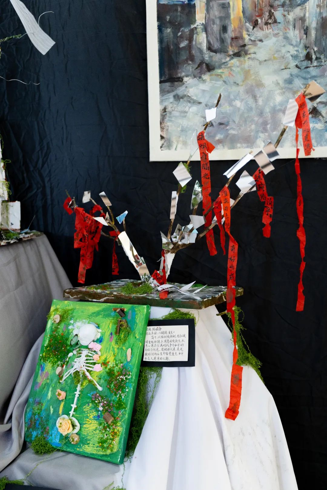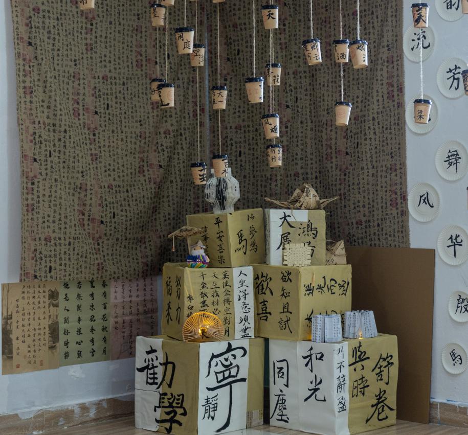 比赛限定每支参赛团队200元的创想基金,选手们化身“创意理财师”,在废旧织物、再生木料、自然枯枝、工业边角料等材料中挖掘无限可能。有的用蛋糕盘制作蛇年主题装置,有的将废旧报纸拼贴成女性裙摆……