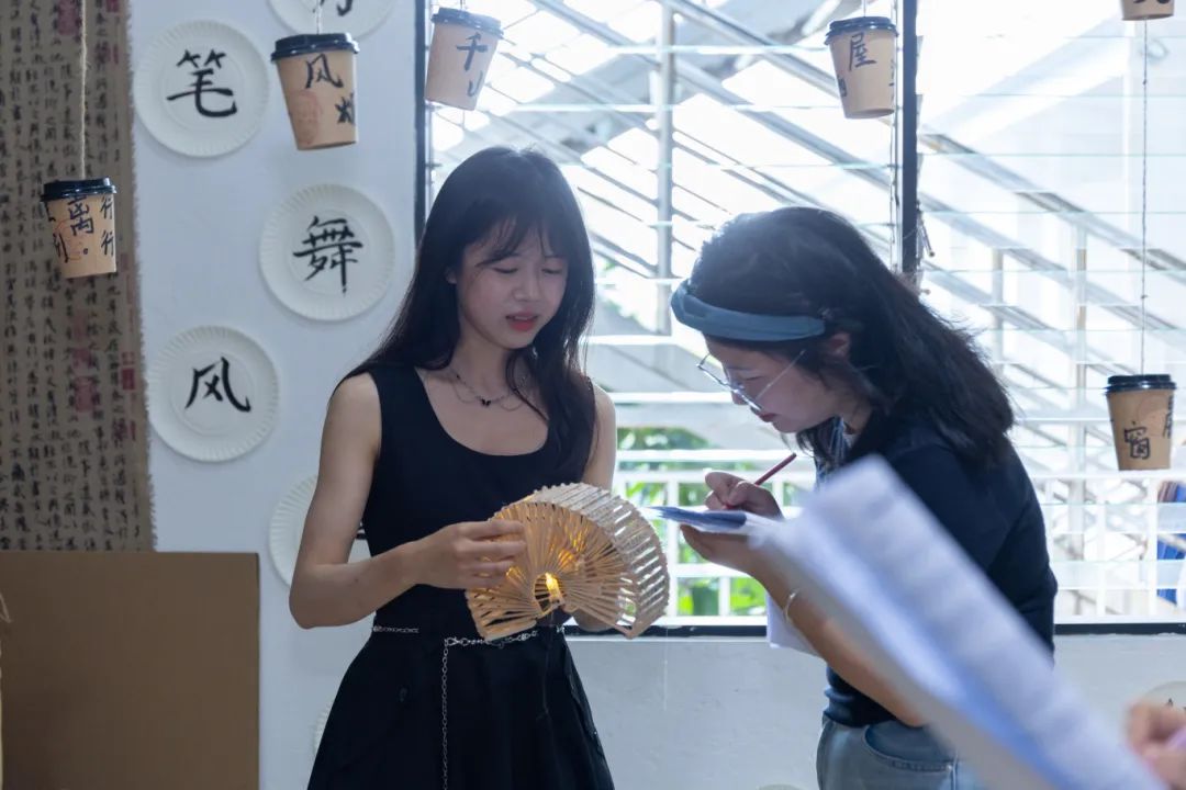 在同学们备赛期间,指导老师全程护航。面对大家遇到的材料运用瓶颈、工艺操作难题及设计创意困境,老师们以“一对一”指导与集体研讨相结合的方式,为同学们剖析问题根源,并通过现场示范工艺技法、分享材料特性与搭配技巧、启发创意设计思路,帮助同学们在实践中提升专业技能。当《泉州簪花》遭遇工艺瓶颈,廖卓璇老师现场示范扎花技法;《奇怪的脸》团队遇到立体主义表现难题,陈丹老师以毕加索作品为例,引导学生通过几何拆解重构人物形态。