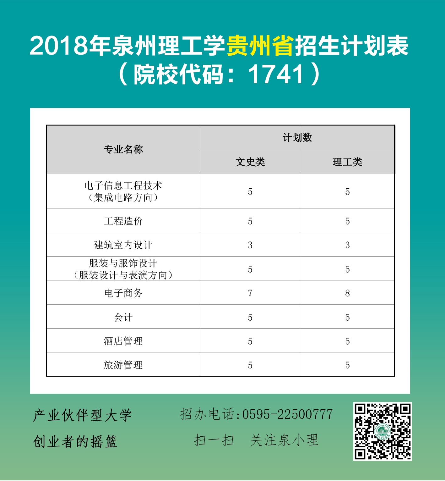 【全国计划】泉州理工学院2018年面向全国11个省招生计划
