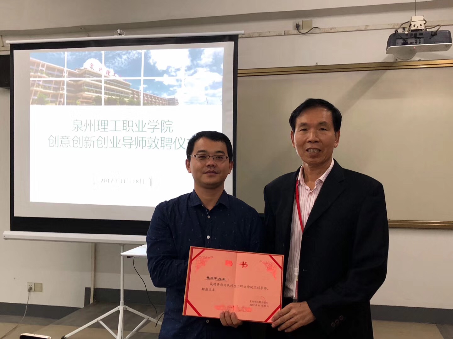 (庄文瑞副校长为林志军先生颁发三创导师聘书)