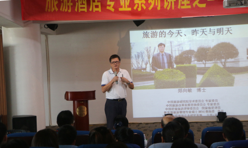 郑向敏教授向商学院同学们介绍,现如今中国已成为全国国际游客到访量最大的国家之一和全球规模最大的旅游客资源市场,旅游业是中国最重要的经济增长点产业,现今的中国酒店业发展迅速,中国成为全球酒店品牌的聚集地,现代住宿业发展态势强劲。旅游酒店专业的同学前途光明,日后的就业岗位非常广阔,希望同学们有吃苦、有上进的精神和意识,在学习中掌握知识、运用知识、在学习生活中打破传统。