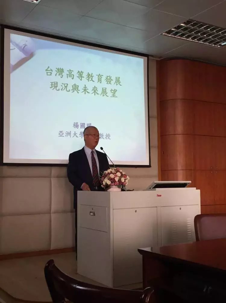 图1.杨国赐教授作《台湾高等教育发展现况与未来展望》