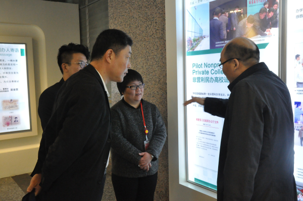 朱飞副局长一行参观了我校校史馆,科研展馆并与我校领导展开调研会议。会议上,我校副董事长吴滨如向朱飞副局长一行介绍了学校的发展情况、领导班子以及师资建设的情况等,并向朱飞副局长一行提出了学校在建设上的建议与意见。