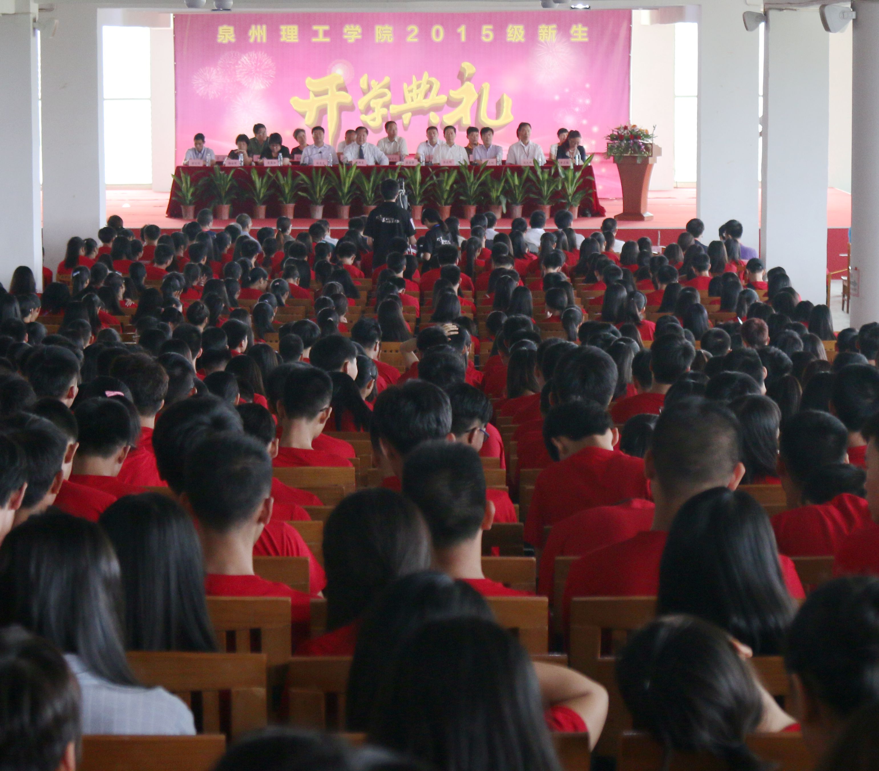 今天我们在这里隆重集会,为2015级新生举行开学典礼。首先我代表全校师生和6万校友欢迎你们在学校建设发展最关键的时刻走进泉州理工学院,成为这个充满生机与活力的大家庭中光荣一员。在此向含辛茹苦抚养你们健康成长的父母亲朋,呕心沥血培养你们走进大学校门的各任老师表示衷心的感谢和崇高的敬意!你们怀揣着他们的期许厚望与自己的求学之梦来到了这里。为使你们尽快适应今后的生活与学习,我把学校情况做一简介。