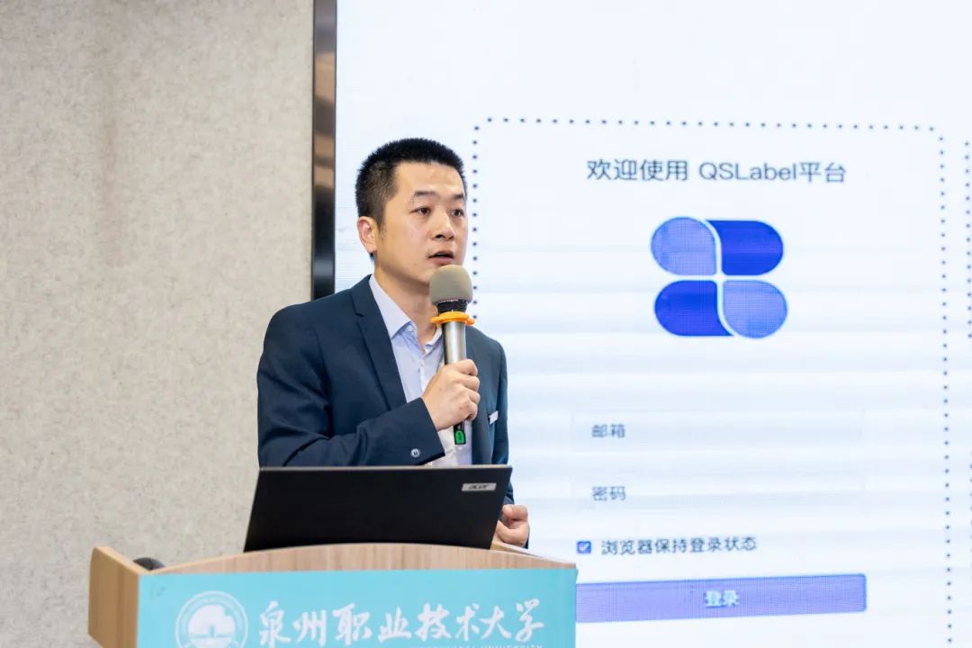 泉大一直致力于深化产教融合,探索校企合作新模式,打造职业教育服务区域经济社会发展的“晋江经验”,联合创新产业学院是字节跳动授权的数据服务基地,与泉州市全速智行科技有限公司合资成立“泉州市泉大智行技术有限公司”,共同研发了“半自动化数据标注平台”。联合创新产业学院书记林江鸿副教授对平台做介绍。