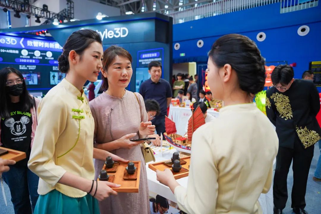 企业展区由华为、希沃、超星、锐捷、用友新道、奇安信、凌迪、索尼、北森生涯、国关智能心理等校企合作“天团”展示丰富的职业教育应用场景,提供多元沉浸式互动机会,还有晋江市域产教联合体牵头企业盼盼食品集团带来的高品质健康品牌新体验。