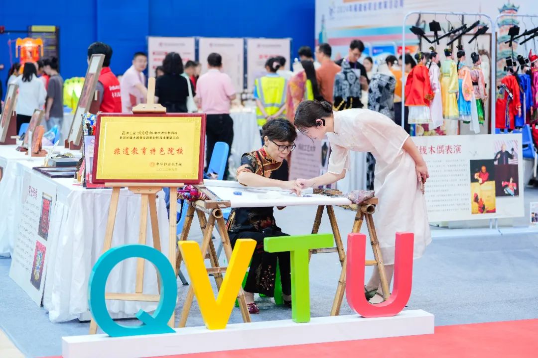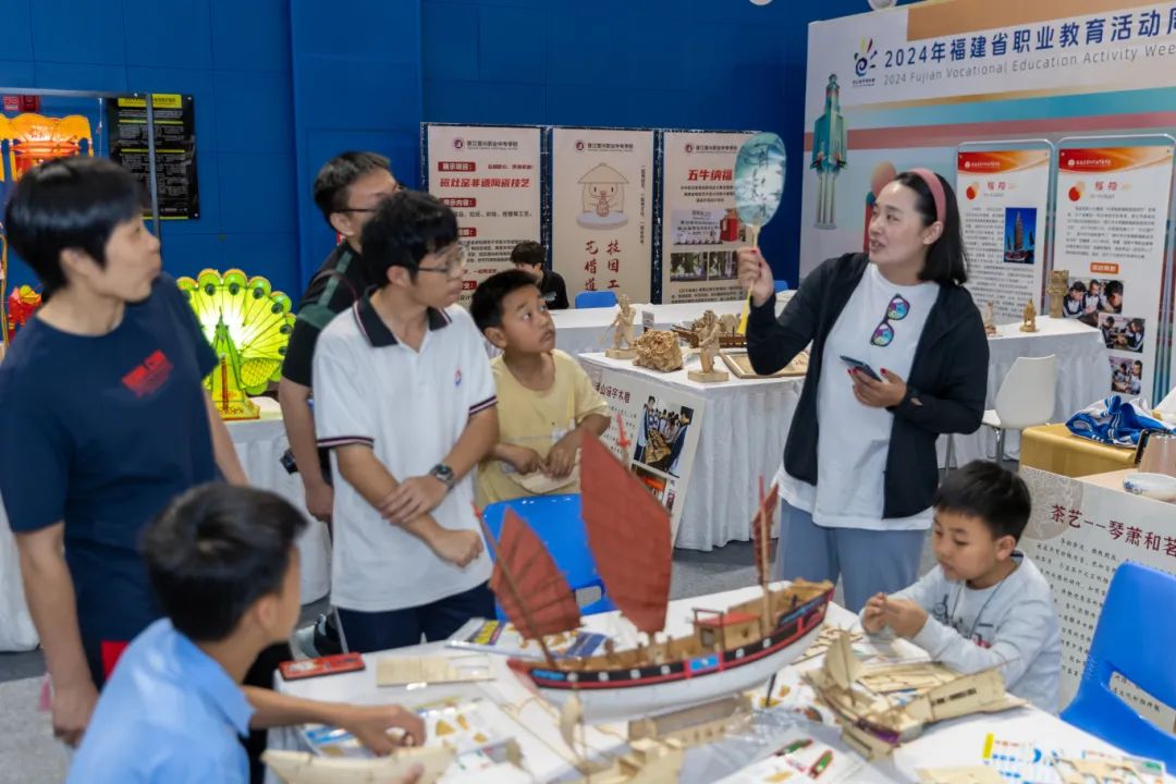 泉州市职教展精彩纷呈,现场有职业院校风采展、非遗文化区以及企业展区。其中,职业院校风采展有来自泉州职业技术大学、黎明职业大学、泉州轻工职业学院、晋江职业中专学校、晋江华侨职业中专学校、晋江晋兴职业中专学校、晋江安海职业中专学校7所中高本院校的数百件师生作品亮相。