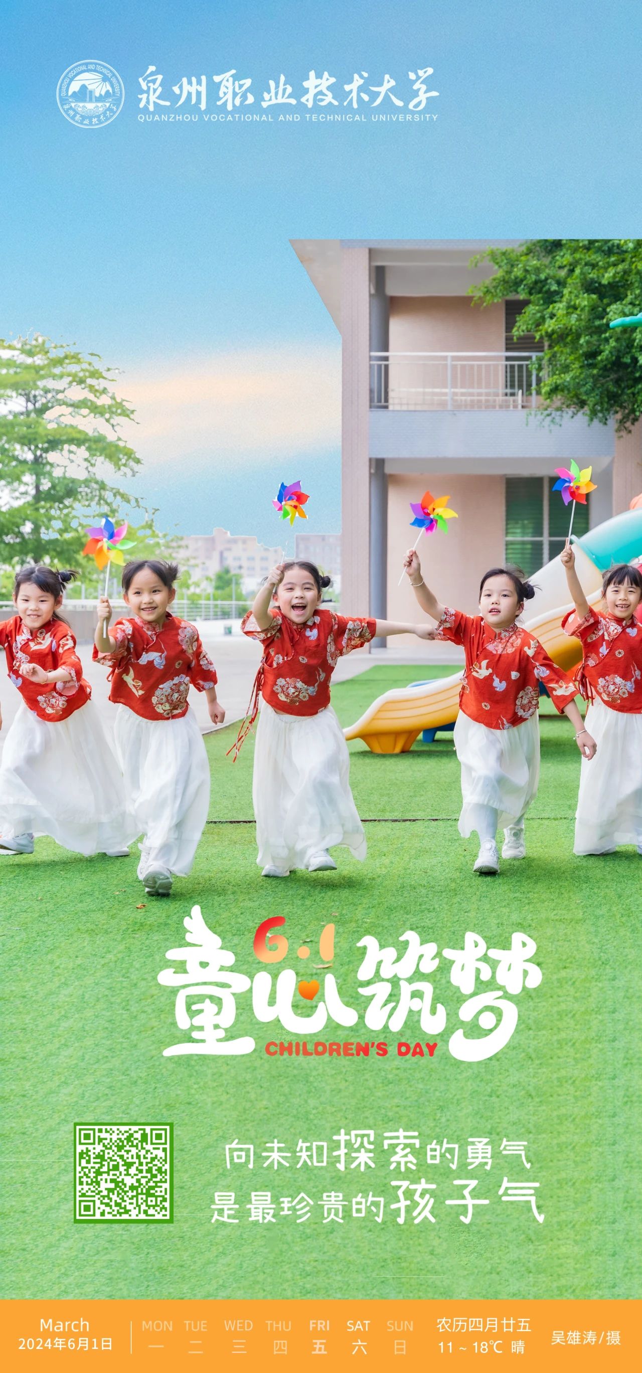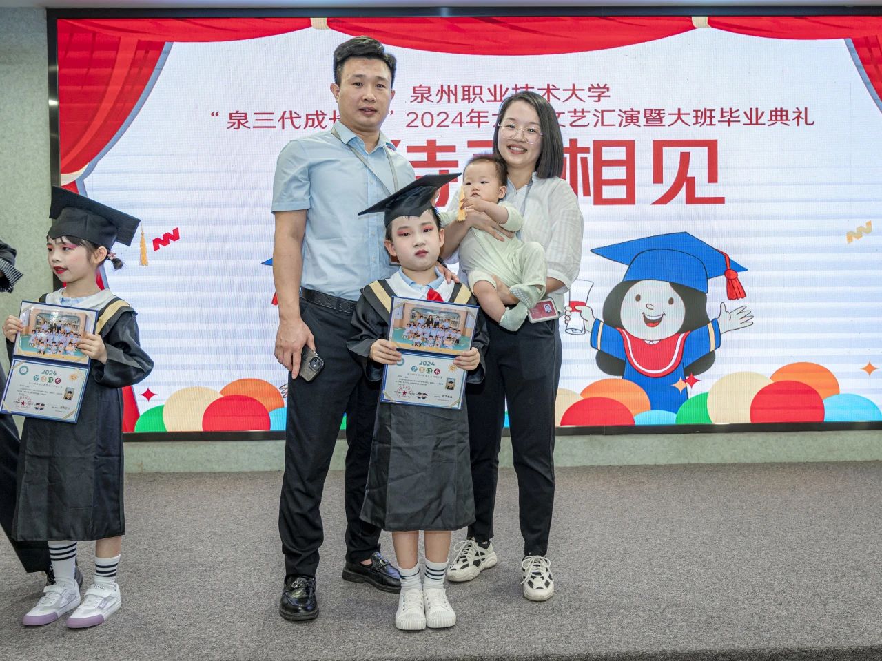 5月30日,泉三代成长营2024年六一文艺汇演暨大班毕业典礼举行。这场活动不仅是为了庆祝六一国际儿童节,这还是成长营大班小朋友们人生中第一个毕业典礼。活动中,孩子们化身小小歌唱家、舞蹈家、画家,用他们清脆的歌声、优雅的舞步和绚丽的画笔,献上一场充满“闽南味”的文艺表演。出席活动的有我校工会主席陈其生、副主席朱冰梅,教育学院院长张君,泉三代成长营负责人欧阳默涵,以及成长营小朋友与家长。