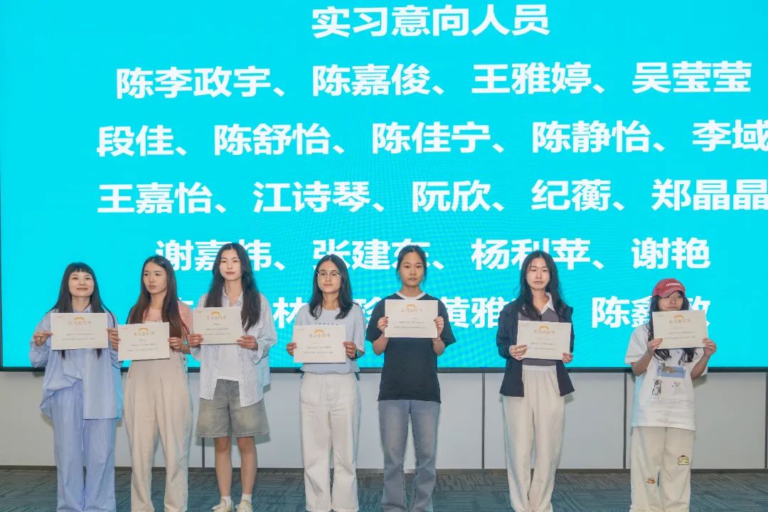 参加当天实训汇报会的有:泉州海新服装科技有限公司品牌总监黄雪胶、业务总监洪炳豪、海外市场业务总监梁妮,泉州职业技术大学艺术传媒学院书记涂永坚、服装与服饰设计专业主任李亚兰、服装与服饰设计专业营销方向教师杨子豪、学业辅导员钟荣。