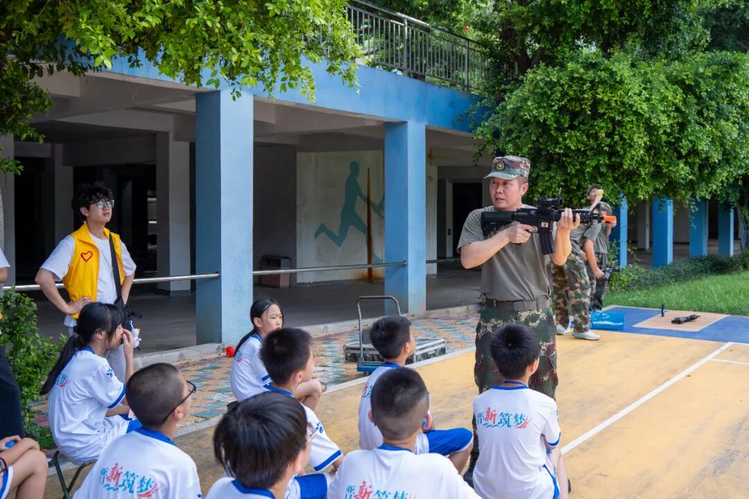 在晋江市梧林古村落,讲解员讲述着华侨下南洋的奋斗故事、古村落的红色往事,营员们认真记录着“家国同心”的深刻内涵。营员们还观看了融合情景剧《侨批往事》,了解泉州晋江梧林侨胞爱国爱乡的故事。军事射击体验课上,营员了解95式自动步枪,学习据枪和手榴弹投掷动作,逐一体验了激光模拟打靶和手榴弹投掷,促进营员对国防教育的认识。