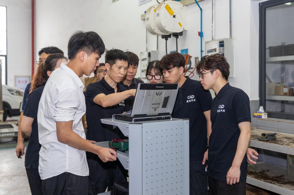 这一次带领学生到厦门建发汽车泉州生活体验馆实训,既为他们做了知识上的讲解和温习,同时还请了企业导师为他们做销售和检测维修方面更加具体的训练,以期实现深度的产教融合,为学生未来走上工作岗位做好更充分的准备。