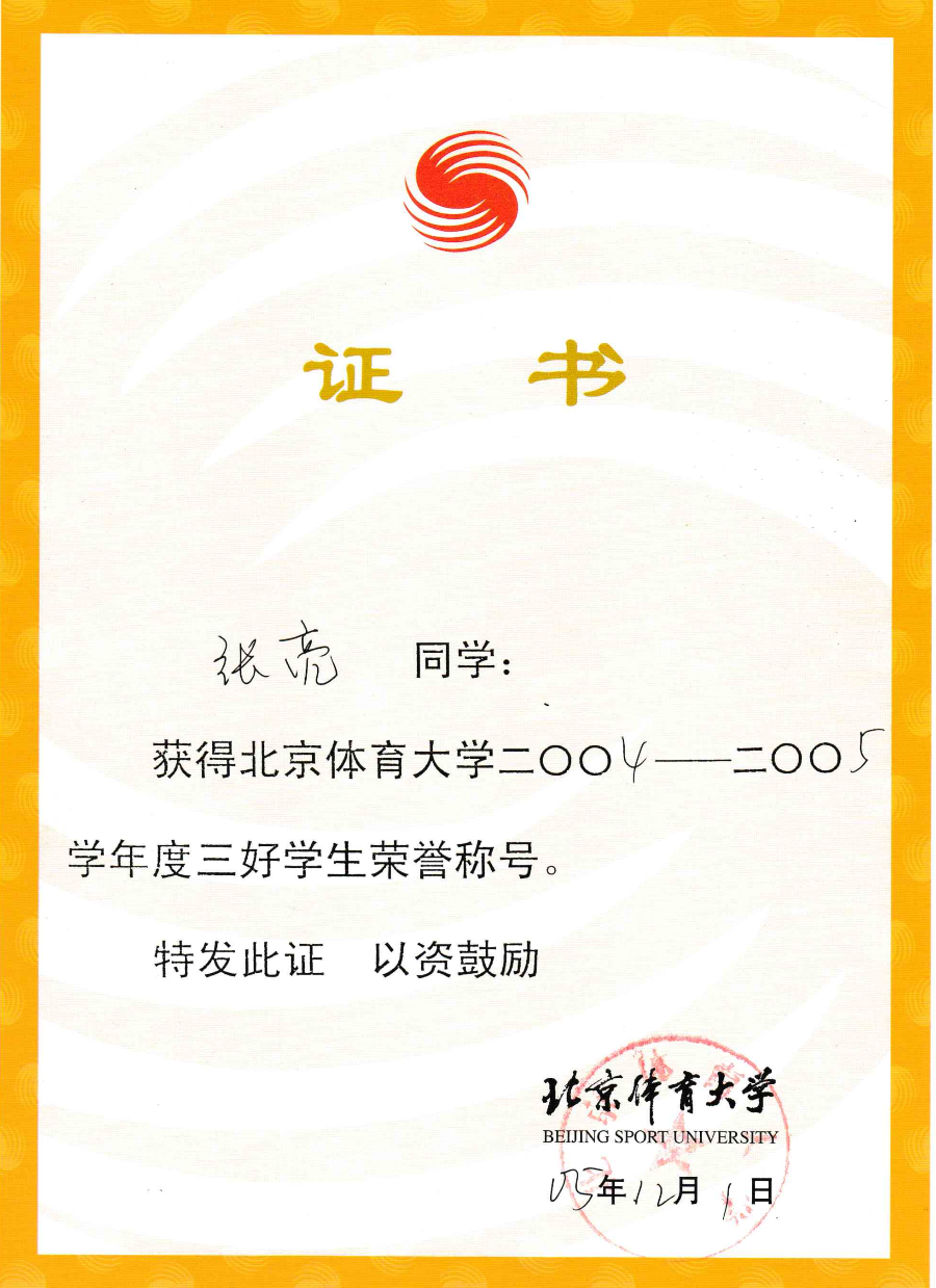 张亮:我刚出道的时候就是练跑步的,由于当时教练的安排就改成竞走,其实当时我跑步已经很厉害了(笑)。2004年我是免试上了北京体育大学竞技体育学院优秀运动员班,这个班级是当时北体针对优秀运动员而开设的,里面都是各个项目的优秀运动员、全国冠军、奥运冠军,比如2004年雅典奥运会摔跤冠军王旭也在这个班级。由于竞走运动在大学体育中比较少开展,上大学后我就又开始较为专注地跑步。因为当时刚下队,体能又好,气氛也好,所以在北体四年里,除了平时上课,跑步锻炼从没断过,我还经常参加一些跑步活动,马拉松赛事、登山越野跑、全国山地户外运动、国际山地户外锦标赛,还有骑行等,在校还荣获过优秀三好学生、优秀学生干部、年度奖学金等。